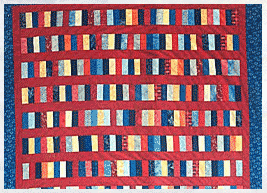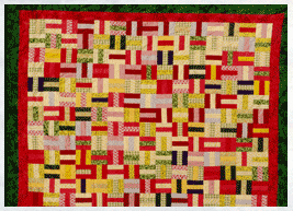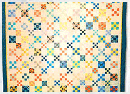 This year’s quilt is made with fabric donated by NNS families and sourced used to reduce our environmental impact. It is a classic 9-patch pattern, with a variety of greens, blues, and ikat fabrics.