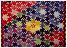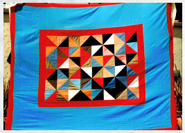 This is the beautiful quilt we raffled off in 2021. The pattern for this quilt is called ”Flying Geese.” It is a queen-sized, 100% linen quilt, hand-dyed with natural dyes: madder, indigo, walnut, osage, cochineal, pomegranate. NNS families contributed over 100 hours of quilting with sashiko thread.